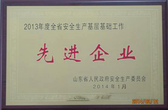 公司榮獲“山東省2013年度安全生產(chǎn)基層基礎(chǔ)工作先進(jìn)企業(yè)”榮譽(yù)稱(chēng)號(hào)