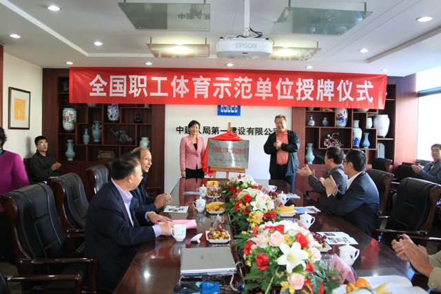 儀式上,中建體協(xié)秘書長彭桂臣宣讀了《中華全國總工會、國家體育總局關(guān)于命名全國職工體育示范單位的決定》,國家體育總局群體處處長王小寧為一公司授牌。
