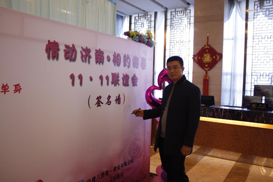2016年11月11日,由中建八局一公司、濟南市立一院、濟南市立五院三家單位主辦,濟南分公司承辦的“情動濟南?相約海泰 11?11聯(lián)誼會”在倪氏海泰酒店隆重舉行,濟南市總工會副主席蒲玉全、濟南市衛(wèi)計委副主任張振民、團委書記鄧陽、濟南市第一人民醫(yī)院黨委書記辛然、濟南市第五人民醫(yī)院副院長孫玉環(huán)、濟南分公司黨總支書記霍文濤、公司黨委工作部副部長齊昕新等領(lǐng)導(dǎo)出席了活動現(xiàn)場。