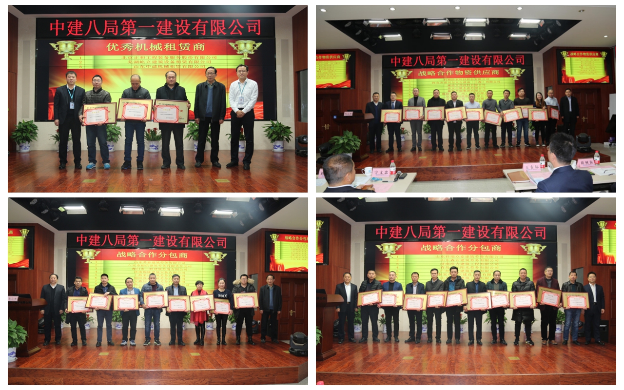隨后,5家優(yōu)秀分供商代表進(jìn)行了經(jīng)驗(yàn)交流發(fā)言講話。會議共表彰了39家戰(zhàn)略合作分包商、6家安全管理優(yōu)秀分包商、5家質(zhì)量控制優(yōu)秀分包商、7家工期履約優(yōu)秀分包商、10家戰(zhàn)略合作物資供應(yīng)商、5家五星優(yōu)秀物資供應(yīng)商、10家四星優(yōu)秀物資供應(yīng)商、3家優(yōu)秀機(jī)械租賃商,并為獲獎(jiǎng)的優(yōu)秀分供商代表頒發(fā)獎(jiǎng)牌和榮譽(yù)證書。