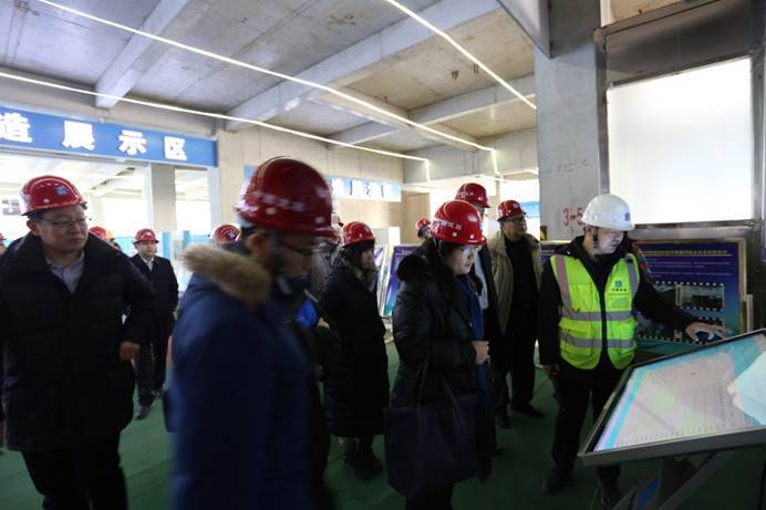 閻東星一行在項目管理人員的引導(dǎo)下,首先赴施工現(xiàn)場進行實地考察。項目部管理人員對工程概況、現(xiàn)場布置、施工科技創(chuàng)新、智慧建造對抗震措施的促進作用及取得的榮譽等內(nèi)容向閻東星一行進行詳細匯報。隨后,閻東星一行參觀了項目智慧建造體驗館,聽取了項目部管理人員對BIM、VR、AR和互聯(lián)網(wǎng)的融合與應(yīng)用的講解,并了解其在綠色施工、質(zhì)量管理、安全管理、科技管理和總承包管理五大模塊的應(yīng)用以及研發(fā)。