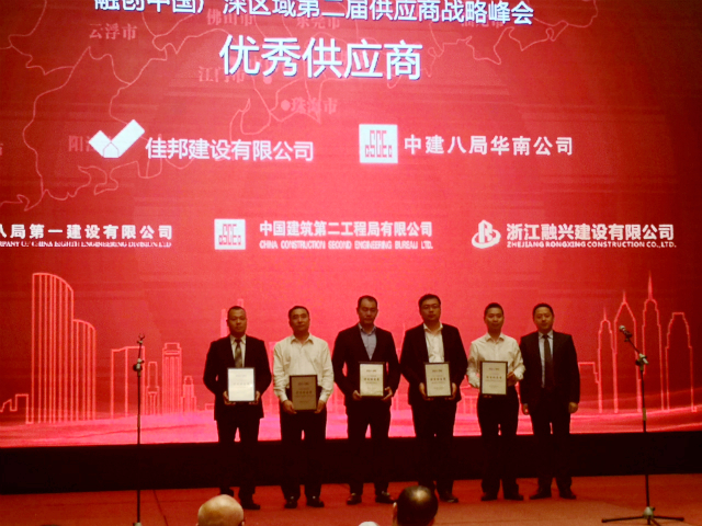 12月2日,在融創(chuàng)集團(tuán)召開的融創(chuàng)中國廣深區(qū)域第二屆供應(yīng)商戰(zhàn)略峰會(huì)上,中建八局第一有限公司榮獲融創(chuàng)廣深2018年度總包類“測(cè)評(píng)優(yōu)秀獎(jiǎng)”及總包類“優(yōu)秀供應(yīng)商”稱號(hào)。中建八局第一建設(shè)有限公司助理總經(jīng)理李允斌,華南公司副總經(jīng)理趙云蕾代表公司出席了會(huì)議。