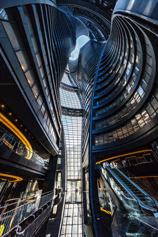 北京麗澤SOHO被威媒體評為2018年度世界十大絕美建筑和2019年度最值得期待建筑,擁有世界唯一的超200米中庭設(shè)計,被譽為扭轉(zhuǎn)的空中城市、璀璨的夜空之眼。憑借著超高的顏值與實力,這棟建筑順利成為國內(nèi)城市攝影圈的新寵。