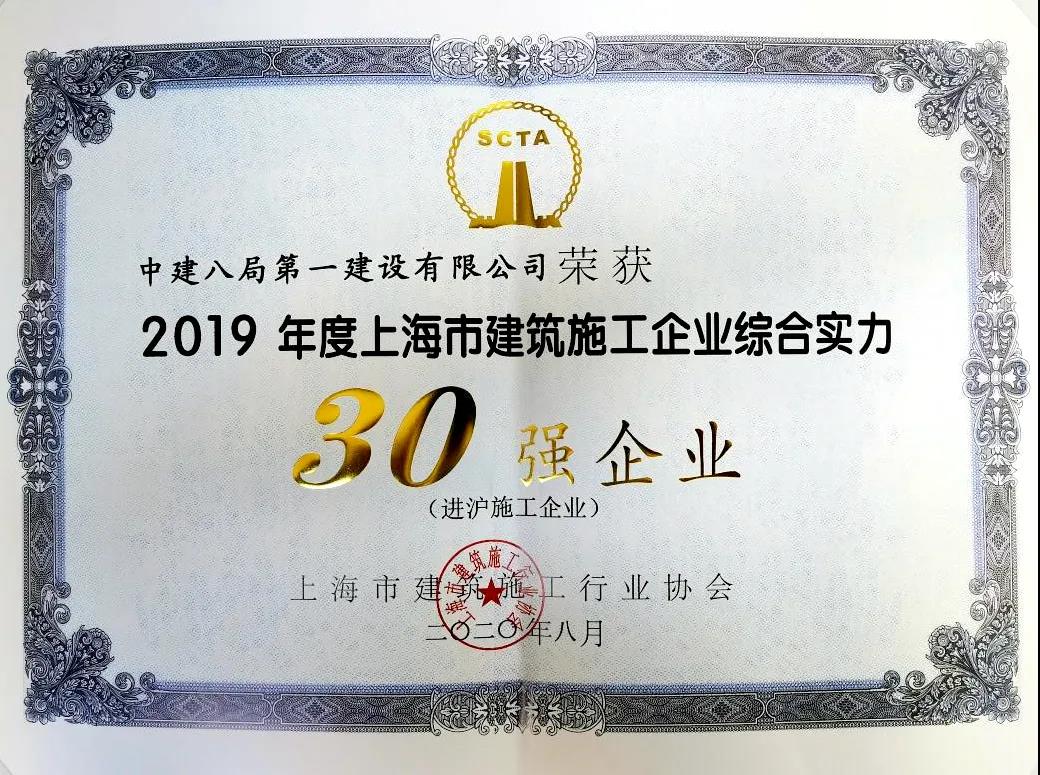 近日,第十六屆(2019年度)上海市建筑施工企業(yè)綜合實力排名揭曉,中建八局一公司連續(xù)3年榮獲“上海市進滬施工企業(yè)綜合實力30強”榮譽,綜合排名位列中建集團三級單位第2名!