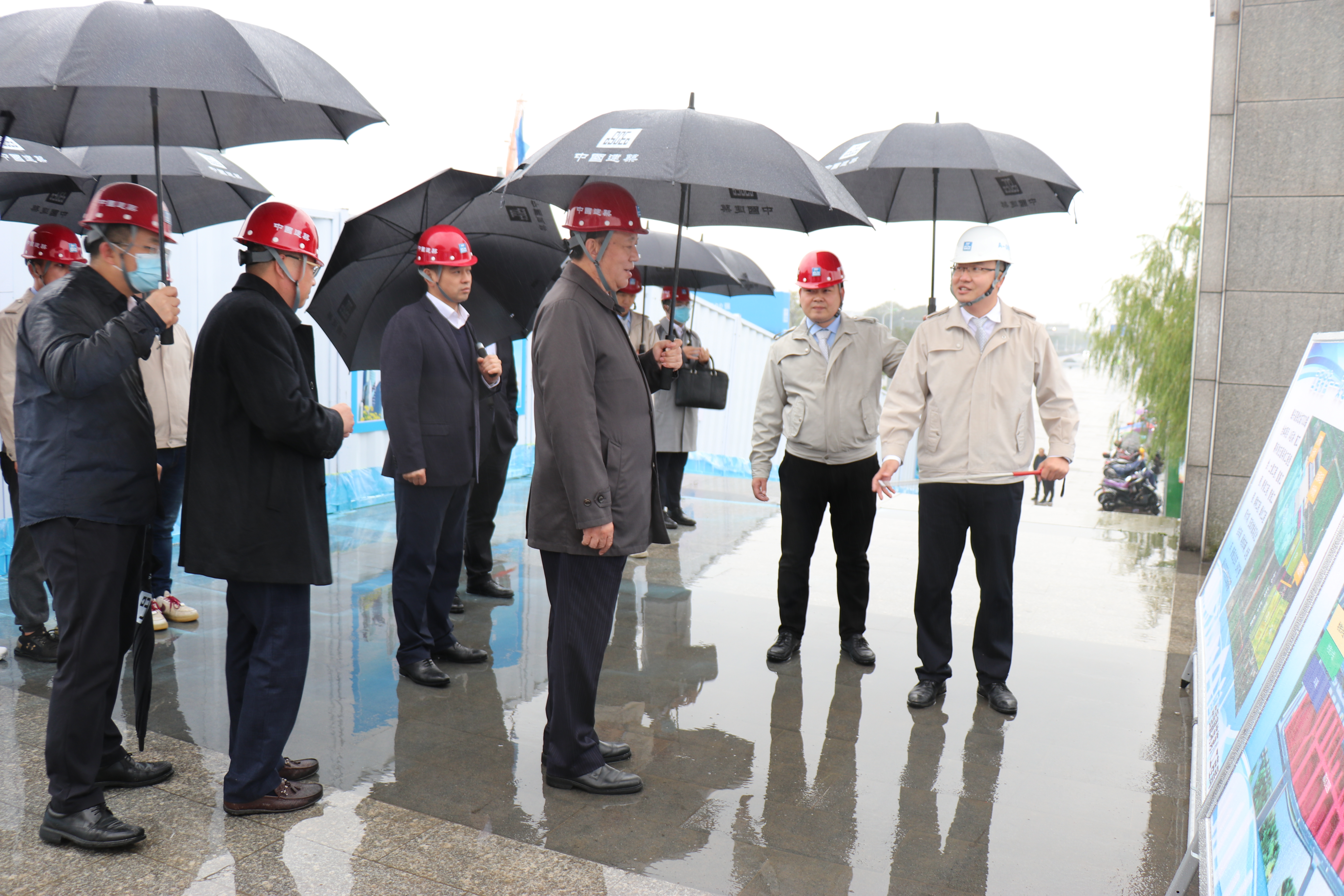 校榮春一行抵達(dá)項(xiàng)目后,直奔施工現(xiàn)場(chǎng),查看了項(xiàng)目整體建設(shè)情況,詳細(xì)了解了工程概況、總平面布置、工程特點(diǎn)及施工進(jìn)展等情況。