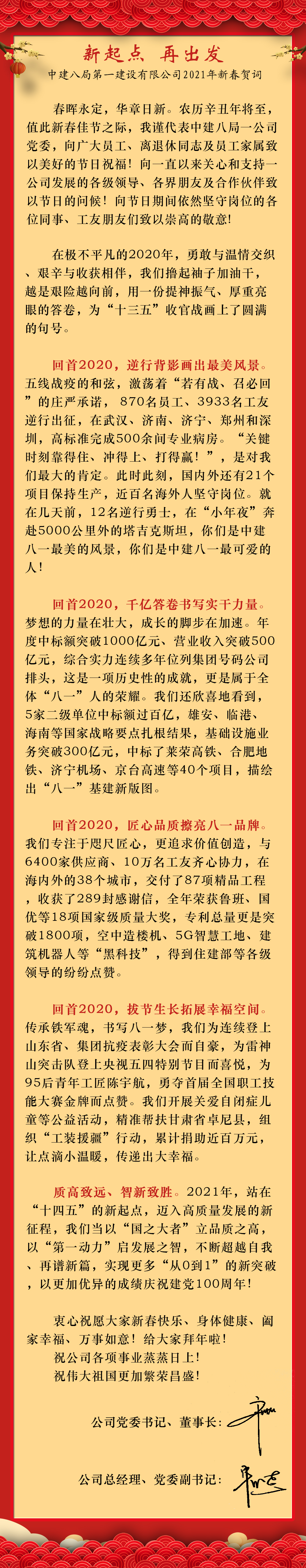 新春鉅獻(xiàn) | 中建八局一公司新年賀詞:新起點(diǎn),再出發(fā)