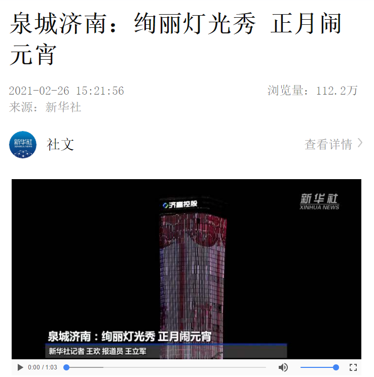 中建八一特別出品的“絢麗燈光秀 正月鬧元宵”視頻登上新華社客戶端
