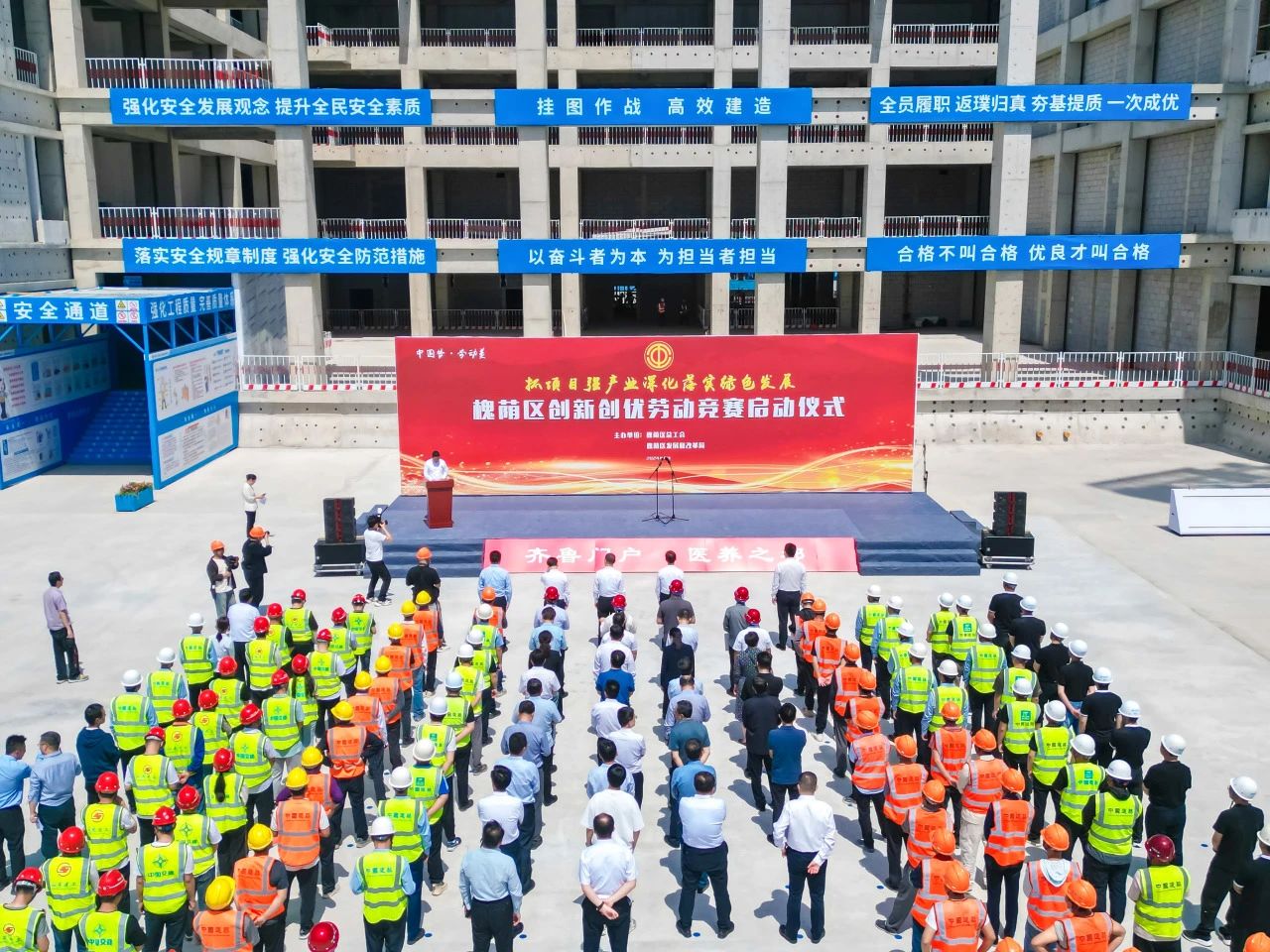 4月26日,濟南市槐蔭區(qū)2024年“抓項目強產業(yè) 深化落實綠色發(fā)展”創(chuàng)新創(chuàng)優(yōu)勞動競賽啟動儀式,在中建八一承建的中國中醫(yī)科學院廣安門醫(yī)院濟南醫(yī)院項目舉行。