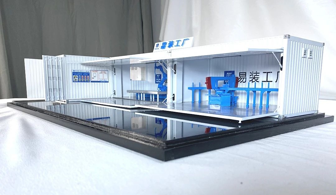 此次推出的易裝工廠2.0版本,以集裝箱為載體,周轉(zhuǎn)便捷,增加激光切割擴(kuò)孔機(jī)焊接機(jī)器人等智能化加工設(shè)備,有效提升現(xiàn)場(chǎng)工廠化構(gòu)件占比。