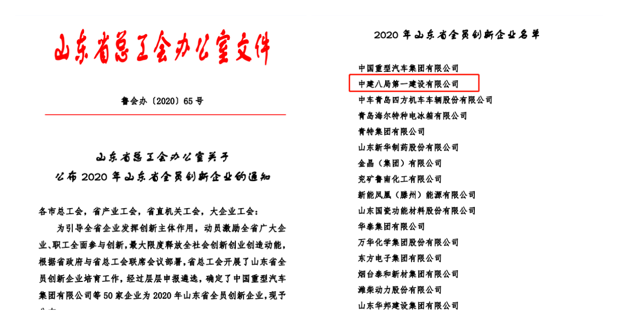 近日,山東省總工會(huì)、濟(jì)南市總工會(huì)相繼發(fā)布《關(guān)于公布 2020 年山東省全員創(chuàng)新企業(yè)的通知》和《關(guān)于2020年度泉城職工全員創(chuàng)新競(jìng)賽獲獎(jiǎng)名單的通報(bào)》,公司共榮獲5項(xiàng)獎(jiǎng)項(xiàng)。