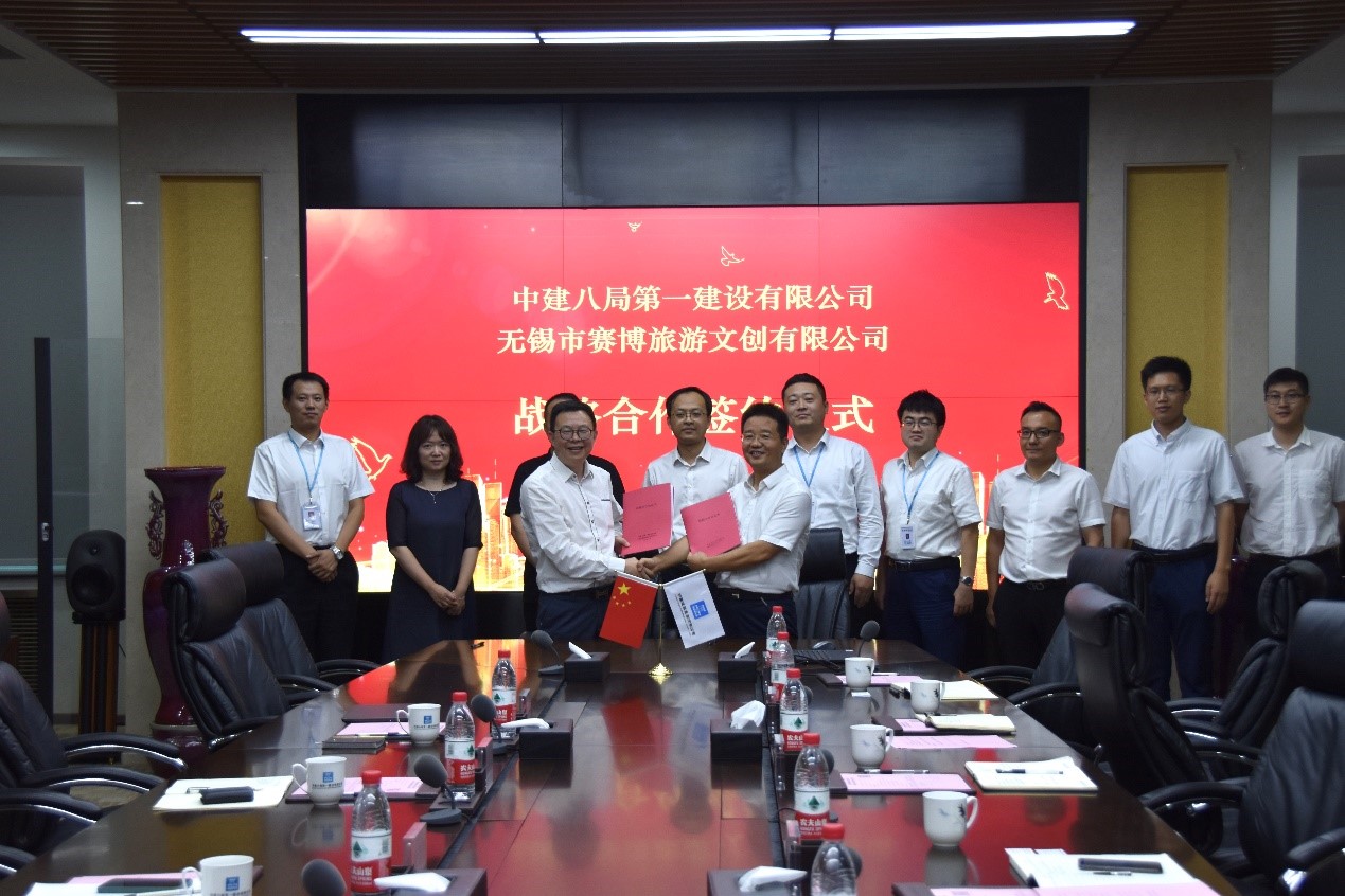 7月16日下午,中建八局第一建設(shè)有限公司與無錫市賽博旅游文創(chuàng)有限公司簽署戰(zhàn)略合作協(xié)議。