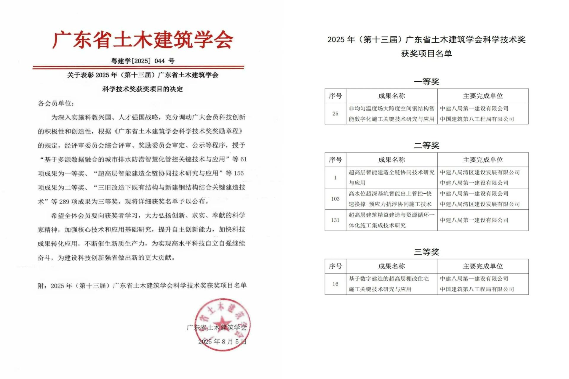 “智”筑嶺南!中建八一再添5項(xiàng)省級科技獎