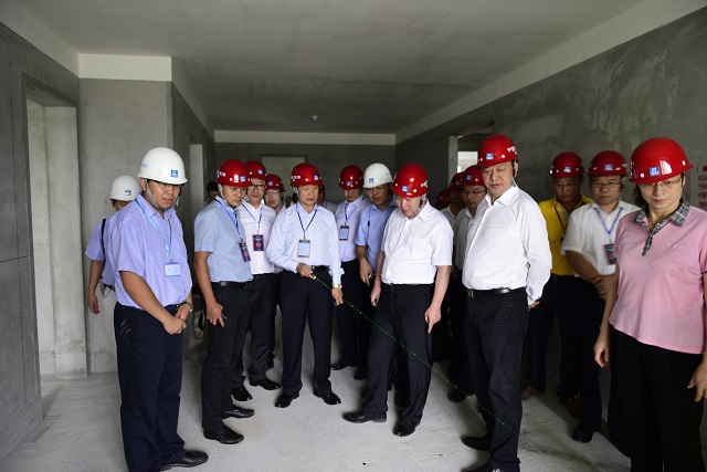 在聽到項目人員介紹每一個工法樣板都可以通過二維碼掃描獲知時,呂正韜非常感興趣,并興致勃勃的親自試驗,掃描出的工法樣板詳細介紹了施工工藝和過程,呂總給予了充分肯定。觀摩過程中,呂正韜一行不時被項目精細化管理所吸引?!斑@是我見到的最好的電梯保護;這個管線布置絕對漂亮;這個結(jié)構(gòu)面做的真不錯;這個線條的細部處理顯示出了八局的高水平”,現(xiàn)場的施工質(zhì)量讓觀摩團領(lǐng)導贊不絕口。不在觀摩路線路里的質(zhì)量怎么樣?呂總一行打破常規(guī),臨時決定不再走指定的觀摩路線,當看到其他樓層質(zhì)量和文明施工跟觀摩路線的標準一樣時,呂總一行對八局的管理給予了高度評價。交流過程中,??偨?jīng)理向呂總詳細介紹了八局標準化管理、BIM技術(shù)應用、綠色文明施工、勞務實名制等一系列管理措施。