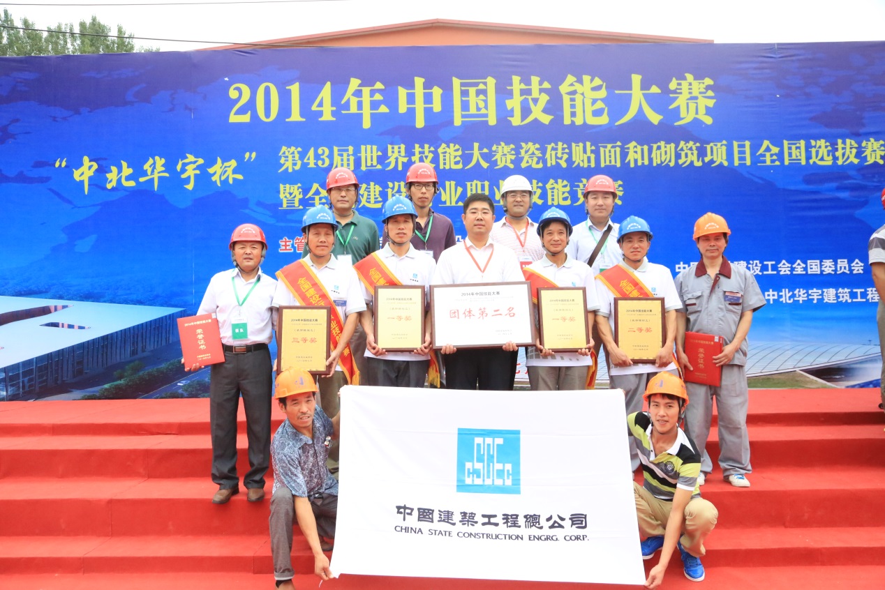 7月22日,2014年中國技能大賽――“中北華宇杯”第43屆世界技能大賽瓷磚貼面和砌筑項目全國選拔賽暨全國建設(shè)行業(yè)職業(yè)技能競賽在北京順義舉辦。公司選派的參賽選手劉學江憑借精湛的技藝,以第二名的成績榮獲該項目的一等獎,并協(xié)助中建代表隊以優(yōu)異成績獲得團體第二名。