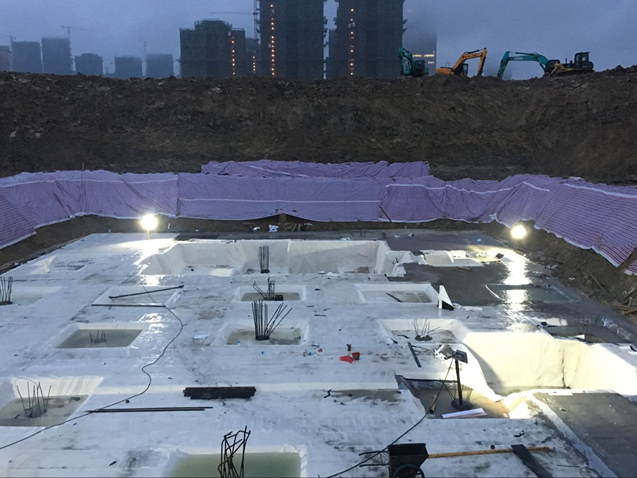 為加快售樓部施工進(jìn)度,對(duì)防水、防水保護(hù)層、砼強(qiáng)度等級(jí)、鋼結(jié)構(gòu)、高支模等進(jìn)行了方案策劃。1、采用1.2mm高分子自粘膠膜防水卷材,克服了連續(xù)十幾天雨天搶工防水無法施工的難題,省去防水保護(hù)層,節(jié)約工期約三天。2、增加砼標(biāo)號(hào)至C40并加早強(qiáng)劑。3、外墻防水保護(hù)層將120mm厚磚砌保護(hù)層,更改為30mm擠塑板+90mm厚GRC板。4、柱型鋼截面為200x300mm,需采用手工焊,工期長,焊縫質(zhì)量不穩(wěn)定,將柱型鋼截面更改為300x300mm,可節(jié)約工期兩天。