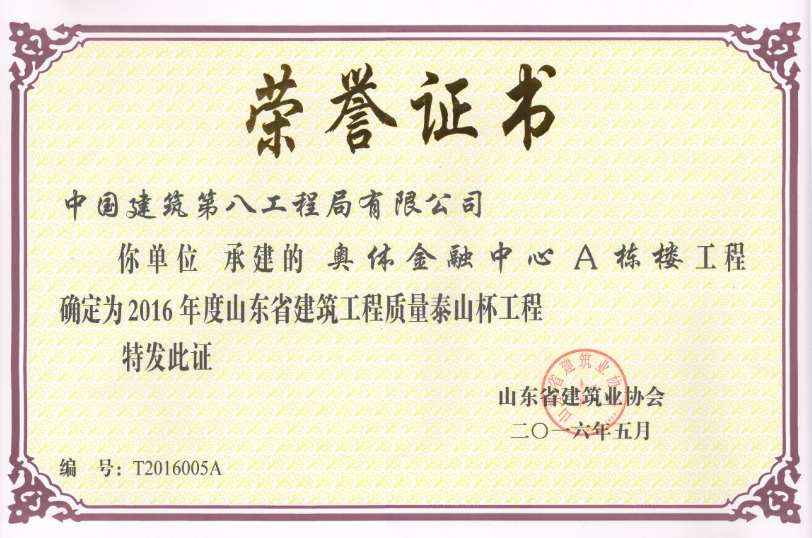 近日,再次傳來喜報――人力資源市場項目、奧體金融中心A棟兩個工程同時榮獲2016年度山東省建筑工程質(zhì)量“泰山杯”獎。