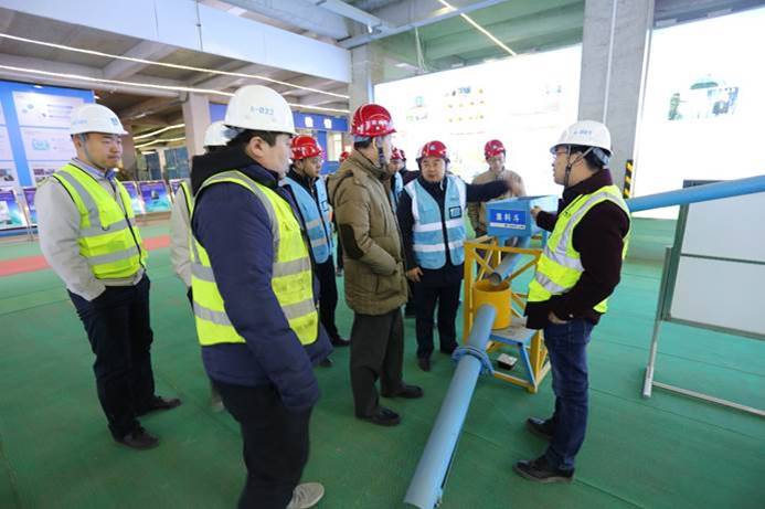 1月10日,中國建筑業(yè)協(xié)會綠色建造與施工分會副秘書長畢杰會同由北京城建集團有限責任公司副總工程師王甦、原江蘇省住建廳建管總站總工程師王群依和中冶科工集團質量處處長劉冰組成的專家組,蒞臨一公司濟南漢峪A5超高層項目,對項目進行全國建筑業(yè)綠色建造暨綠色施工示范工程中期驗收。中建集團杜棟經理、中建八局崔玉章經理及公司相關人員陪同檢查。