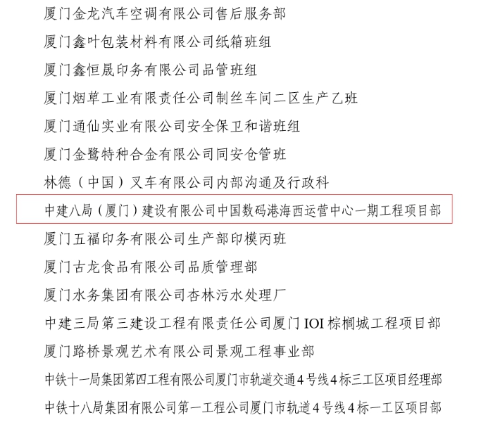 廈門數(shù)碼港項(xiàng)目榮獲廈門市“工人先鋒號(hào)”稱號(hào)