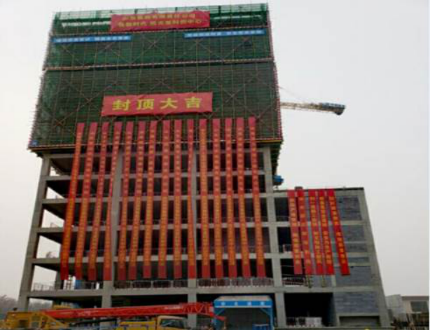 2019年1月15日,東郊飯店房地產(chǎn)開(kāi)發(fā)項(xiàng)目現(xiàn)場(chǎng),彩旗飄飄,伴隨著禮炮聲和歡呼聲,“魯勤時(shí)代·拾光里科創(chuàng)中心春節(jié)慰問(wèn)暨主體結(jié)構(gòu)封頂儀式”開(kāi)始。