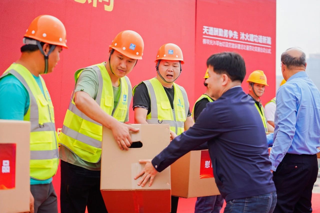 儀式上,宣讀了黨建聯(lián)建暨勞動競賽方案,簽訂了黨建聯(lián)建協(xié)議和勞動競賽目標(biāo)軍令狀;與會領(lǐng)導(dǎo)為項(xiàng)目黨建品牌“建證·粵澳先鋒”揭牌,進(jìn)行了黨員先鋒號授旗,并慰問了一線工友。
