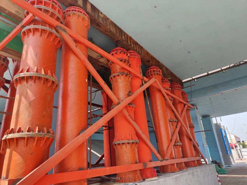 在項(xiàng)目施工過程中,需要四跨現(xiàn)澆梁同步頂升,頂升高度50厘米、重達(dá)2060噸。項(xiàng)目團(tuán)隊(duì)采用橋梁整體頂升技術(shù),每個(gè)液壓千斤頂配備一個(gè)位移傳感器,實(shí)時(shí)監(jiān)測(cè)、控制橋梁頂升的位移和姿態(tài),使同步頂升的精度精確到1毫米,實(shí)現(xiàn)千噸重橋梁“拔地而起”。