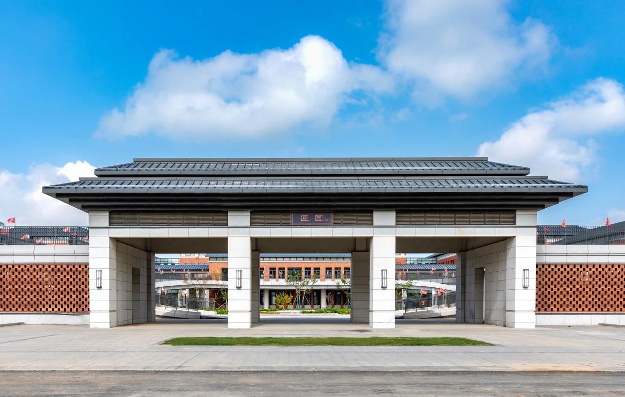 項目以“規(guī)矩方圓”為設(shè)計語言,整體布局主輔有序、四方圍合,大量采用中軸對稱式設(shè)計理念,參考四合院、廊廡等傳統(tǒng)建筑風(fēng)格,將現(xiàn)代元素與傳統(tǒng)文化巧妙融合,打造守持正固的文化校園,營造應(yīng)時而新的藝術(shù)氛圍。
