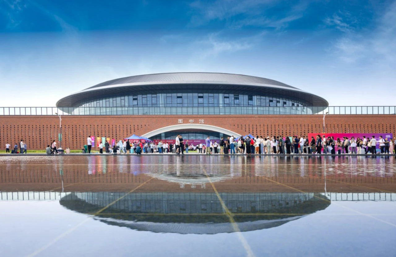 項目圖書館造型參考客家土樓,總建筑面積9433平方米,圓環(huán)形屋蓋內(nèi)徑達(dá)45米,采用開放式現(xiàn)代布局,大面積開窗引入自然光,設(shè)置智能書架、智能導(dǎo)覽系統(tǒng)營造舒適便捷的閱讀空間。