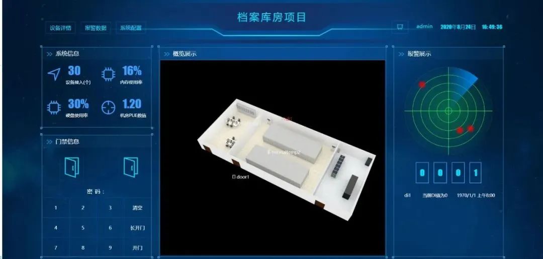 項(xiàng)目打造溫濕度自動(dòng)測(cè)控管理系統(tǒng),按照實(shí)際面積配置溫濕度傳感器,聯(lián)動(dòng)空調(diào)機(jī)組和恒溫恒濕設(shè)備,采用熱回收型空調(diào)機(jī)組,相較于普通機(jī)組節(jié)能率可達(dá)70%,并由智能平臺(tái)統(tǒng)一控制、管理和告警自動(dòng)化啟停,保證24小時(shí)恒溫恒濕,降低庫(kù)房維護(hù)成本。