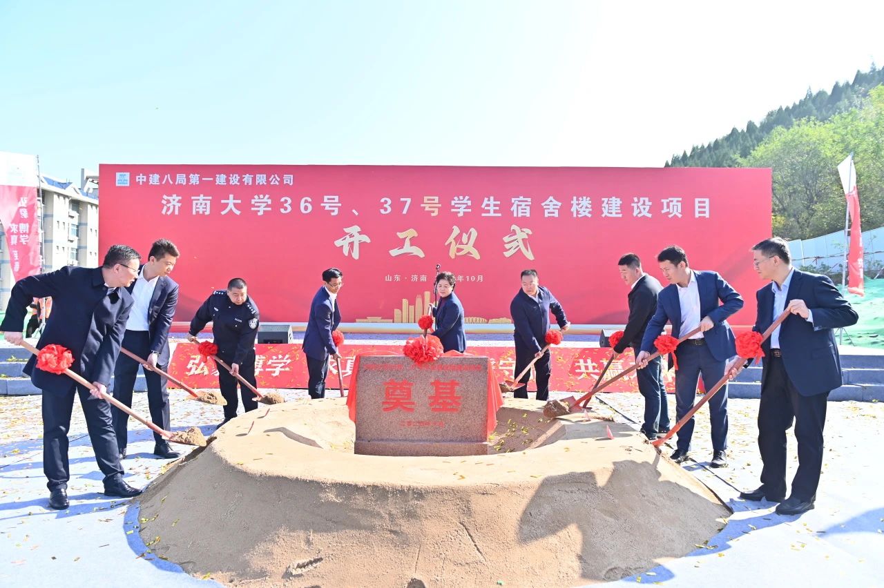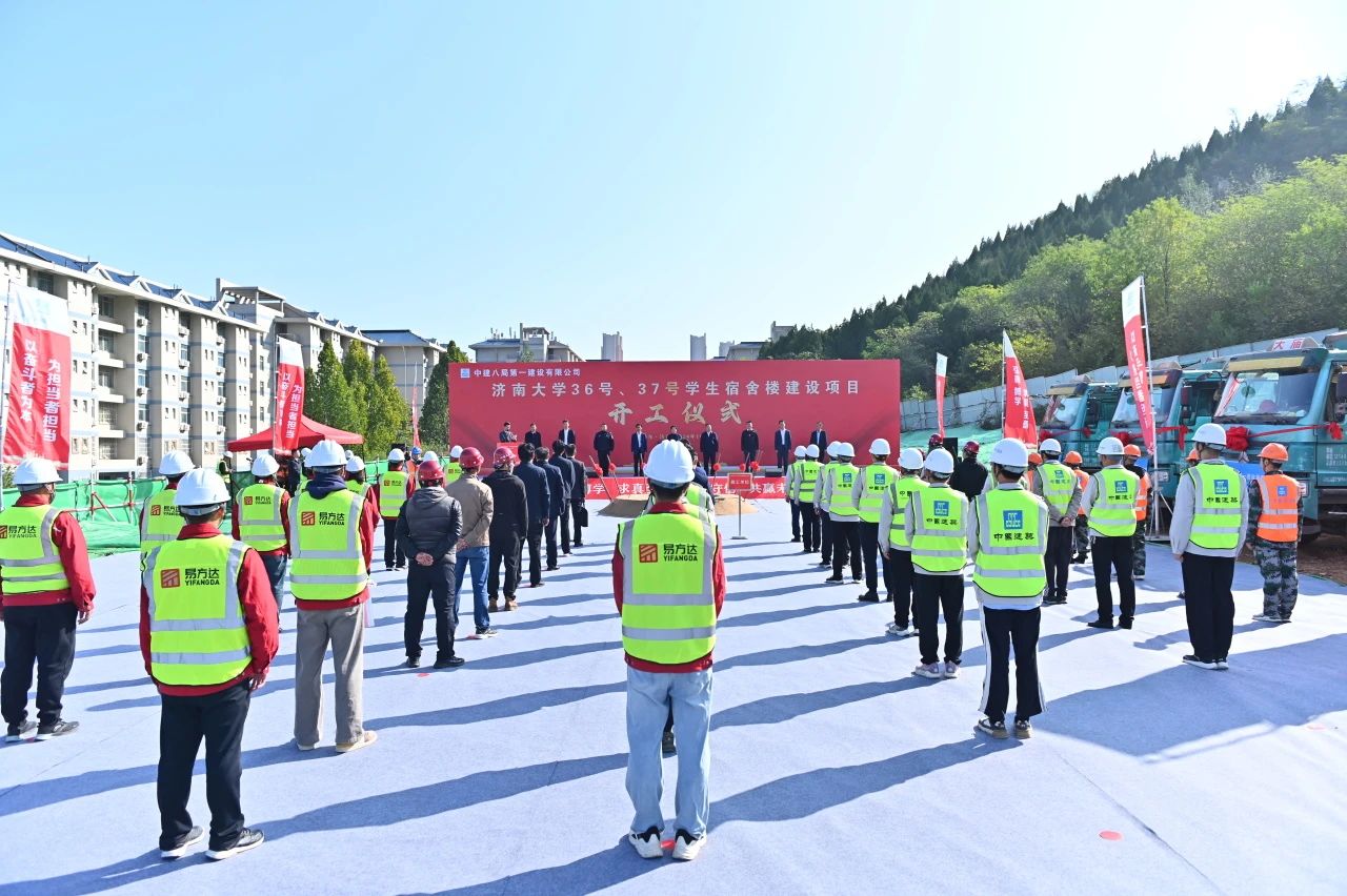 10月23日,濟南大學(xué)36號、37號學(xué)生宿舍樓項目舉行開工儀式,濟南大學(xué)黨委書記劉春華,黨委副書記、校長劉宗明,黨委常委、副校長李強,七賢街道黨工委副書記、總工會主席、武裝部部長王金龍,山東建筑大學(xué)設(shè)計集團有限公司黨委書記梁洪峰,山東易方達建設(shè)管理集團有限公司黨委書記、董事長、總經(jīng)理牛勇,中建八局一公司黨委書記、董事長齊朋及濟南公司相關(guān)負責(zé)人參加。
