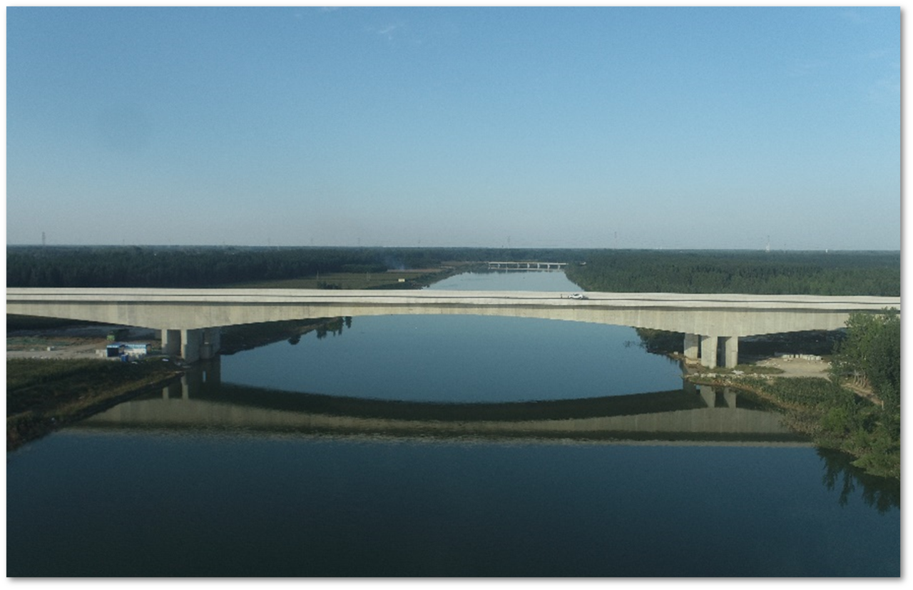 徒駭河特大橋是項目施工的重難點,全長1248.5米,共9聯(lián),單幅橋?qū)?6.5米,主跨長358.5米,最大跨徑165米,主橋采用單箱單室變截面預(yù)應(yīng)力混凝土連續(xù)梁結(jié)構(gòu)形式,是徒駭河跨徑最大連續(xù)剛構(gòu)現(xiàn)澆梁。