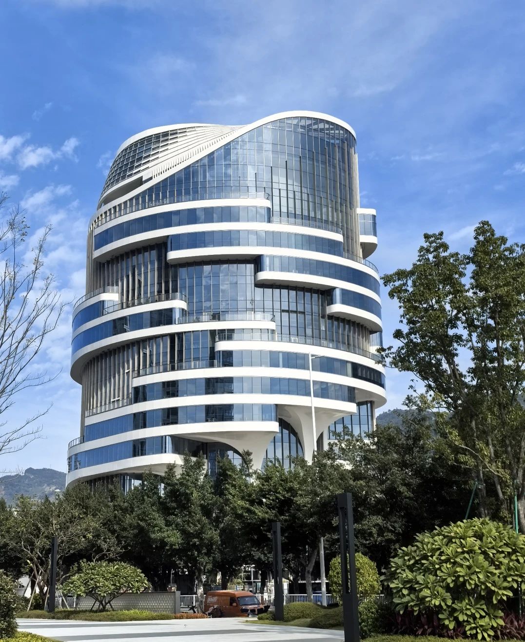 項(xiàng)目以“神奇榕樹屋”為設(shè)計(jì)理念,融入福州特色地域文化,應(yīng)用福州市樹“榕樹”的骨骼脈絡(luò),核心筒呼應(yīng)榕樹粗大的樹干,建筑平面類似榕樹的分支,眾多戶外露臺(tái)形似榕樹的巨大樹冠,營造通透、靈動(dòng)的視覺感受。