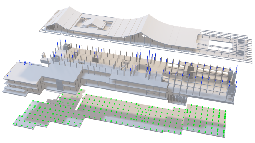 為承載“百年故宮”的重要使命,項(xiàng)目以“穩(wěn)”字為建設(shè)理念,在2.73萬(wàn)平方米的地基內(nèi)澆筑了1600余根灌注樁,確保建筑地基堅(jiān)實(shí)穩(wěn)固。項(xiàng)目利用有限元分析軟件建立復(fù)合減隔震技術(shù)耦合分析模型,在建筑基礎(chǔ)與上部結(jié)構(gòu)之間巧妙設(shè)置325個(gè)大型隔震支座,配合勁性結(jié)構(gòu)、粘滯阻尼器以及抗拉裝置的多重組合,可隔離80%-90%的地震能量,確保文物在安全環(huán)境中妥善保存。
