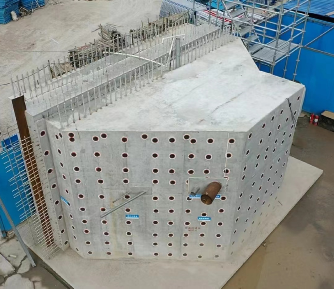 項目在此類工程中首次應(yīng)用 C30 高性能抗裂防輻射混凝土,攻克了 “高容重與強(qiáng)抗裂并存” 的技術(shù)難題,確保結(jié)構(gòu)勻質(zhì)性、穩(wěn)定性及耐久性。治療區(qū)墻體嵌入超厚預(yù)埋屏蔽鋼板,鋼板最厚 50 厘米、單個構(gòu)件最重 110 噸,形成一座堅固穩(wěn)定的 “鋼鐵堡壘”,隔絕輻射的同時保護(hù)精密儀器運(yùn)行安全。
