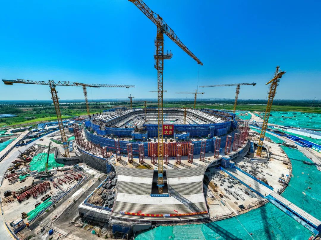 7月7日,濟(jì)南黃河體育中心專業(yè)足球場項目建設(shè)現(xiàn)場塔吊林立、機(jī)械轟鳴、熱潮涌動,經(jīng)過中建八局一公司建設(shè)者們371天的晝夜奮戰(zhàn),項目主體結(jié)構(gòu)順利封頂,標(biāo)志著山東省首個6萬座專業(yè)足球場全面邁入屋蓋鋼結(jié)構(gòu)施工新階段。