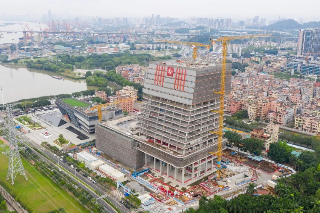 5月8日,廣州外貿(mào)博物館暨文化總部中心項(xiàng)目舉行封頂儀式。 廣州市黃埔區(qū)穗東街道黨工委書記田農(nóng),廣州高新區(qū)投資集團(tuán)有限公司副總經(jīng)理邱曉鋒,高新區(qū)投資控股有限公司董事長楊高歡,廣州海事博物館館長王芳,中建八局一公司華南公司黨總支書記、總經(jīng)理高亮及各參建單位相關(guān)負(fù)責(zé)人參加儀式。