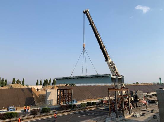 京臺改擴建項目二標跨主線天橋鋼箱梁中跨順利架設