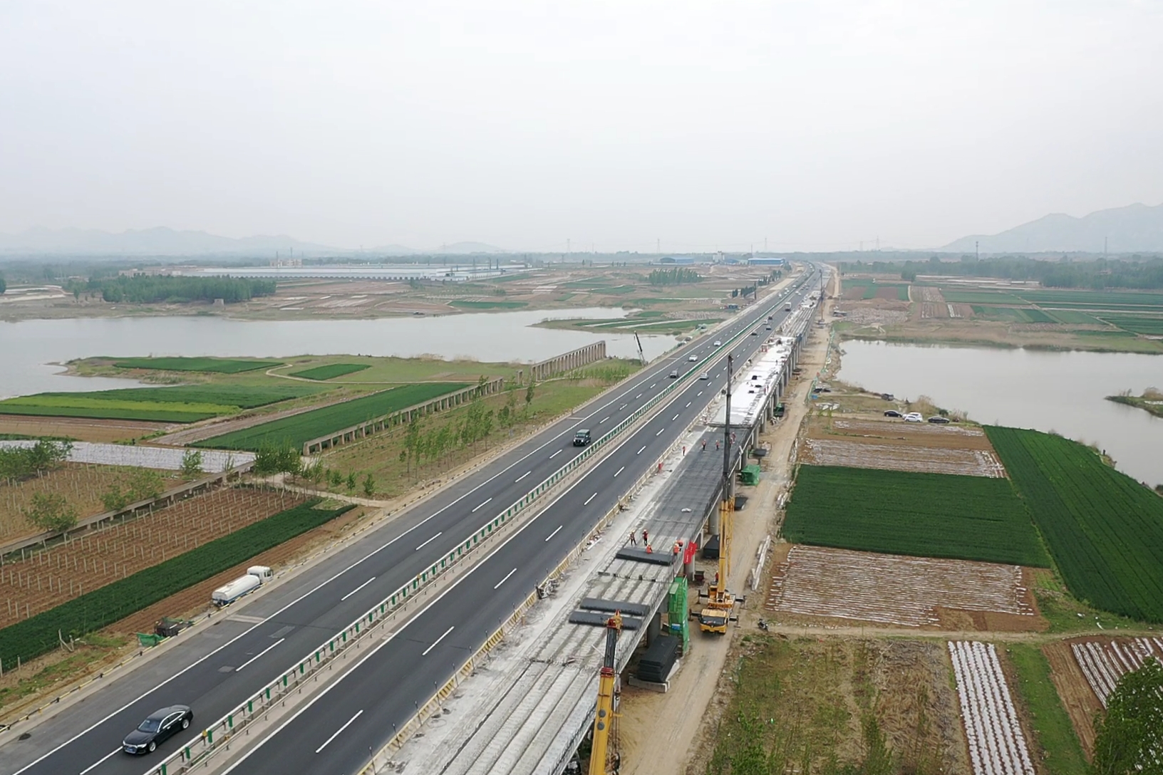 京臺高速公路泰安至棗莊段改擴建工程全線首座特大橋一階段梁板架設完成