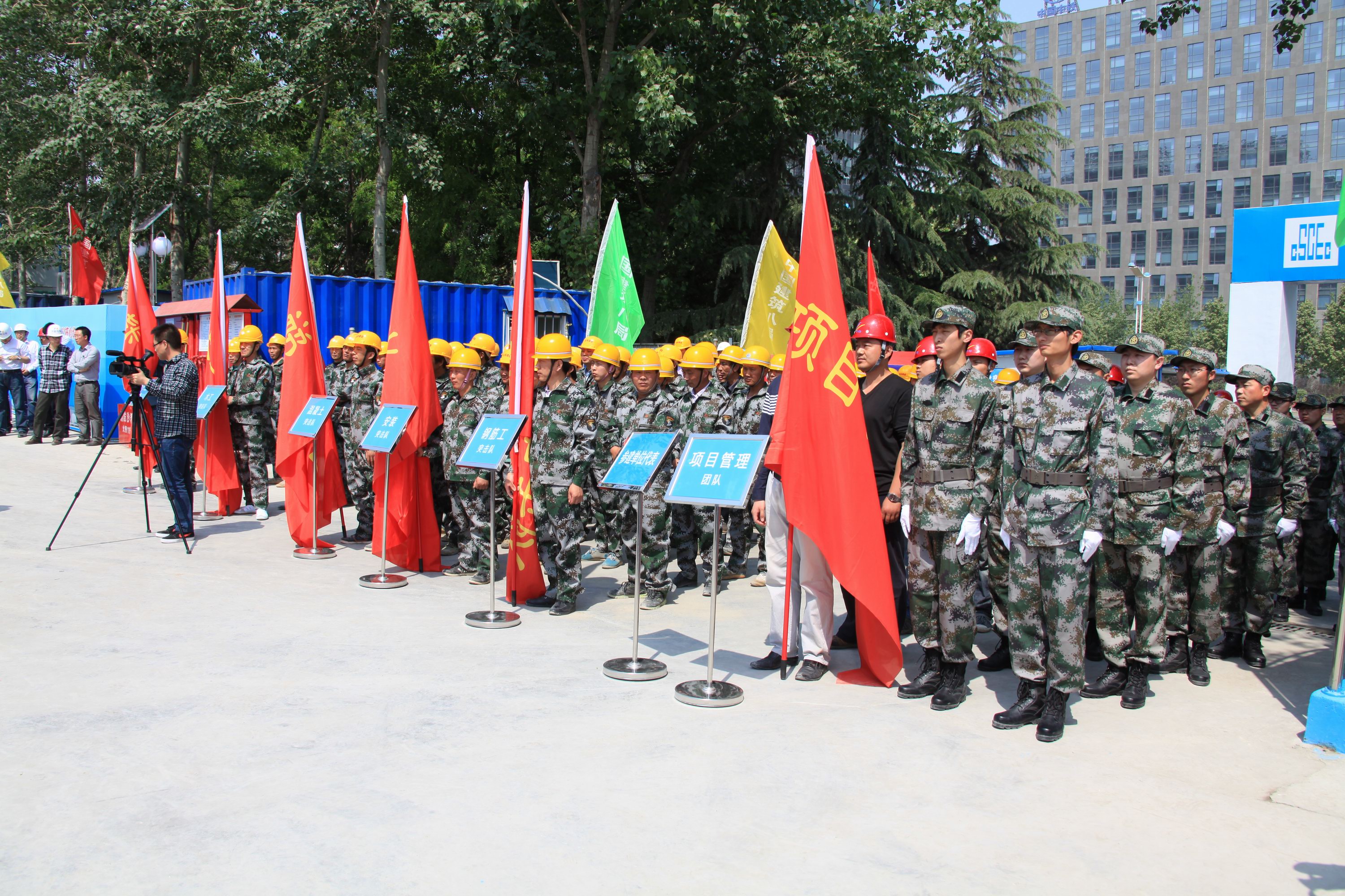 濟(jì)南漢峪金融中心A4地塊二標(biāo)段項(xiàng)目部舉行勞動(dòng)競(jìng)賽、三號(hào)聯(lián)創(chuàng)、創(chuàng)雙優(yōu)暨準(zhǔn)軍事化管理啟動(dòng)儀式