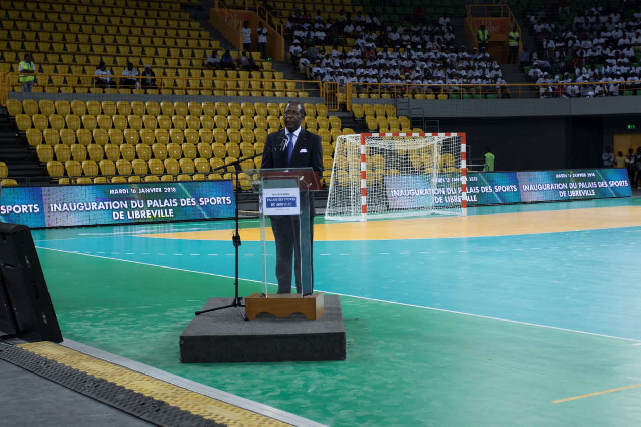 Mathias OtoungaOssibadjouo, Minister for Sports, is giving a speech